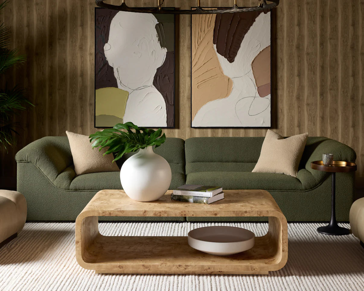 The Burl Veneer Coffee Table is where sculptural design meets timeless craftsmanship. Featuring a smooth yet striking silhouette, this statement piece is crafted from authentic burl veneer, celebrated for its intricate swirling grain patterns that make each table a one-of-a-kind work of art.
